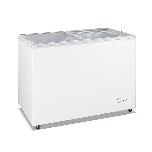 320L Commercial Refrigerator Top Open Sliding Two Flat Glass Door Chest Freezer/Ice Cream Freezer For Meat or Seafood